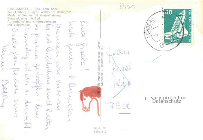 74049698 alte Postkarte Lohberg Lam Gaestehaus Haus Mariele Panorama Bayerischer Wald postalisch gelaufen Erhaltung siehe scans [FriedD77] KatCode: 11110009372178