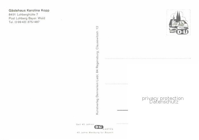 72711594 Lohberg Lam Gaestehaus Karolina Kopp Bayerischer Wald postalisch nicht gelaufen Erhaltung siehe scans [FriedD77] KatCode: 11110009372178