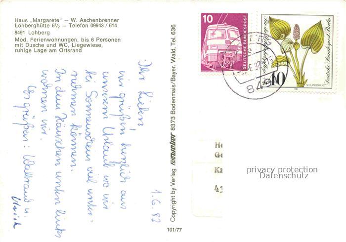 74025849 alte Postkarte Lohberg Lam Gaestehaus Pension Haus Margarete Lohberghuette postalisch gelaufen Erhaltung siehe scans [FriedD77] KatCode: 11110009372178