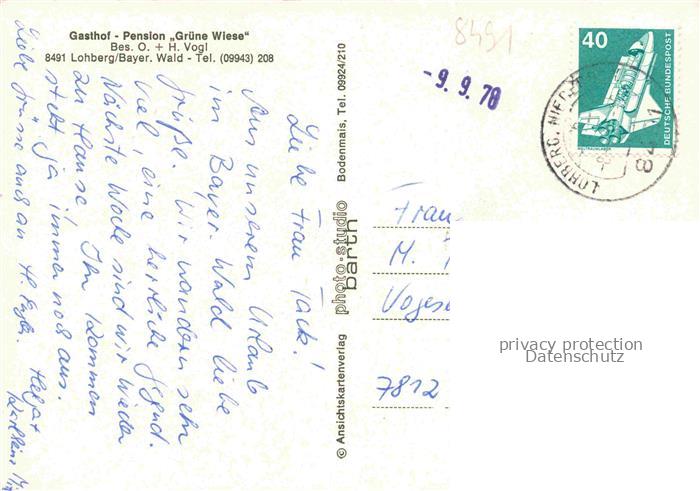 74049650 alte Postkarte Lohberg Lam Gasthof Pension Gruene Wiese postalisch gelaufen Erhaltung siehe scans [FriedD77] KatCode: 11110009372178