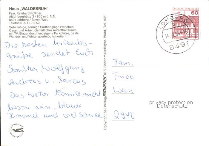 72238473 alte Postkarte Lohberg Lam Haus Waldesruh postalisch gelaufen Erhaltung siehe scans KatCode: 11110009372178