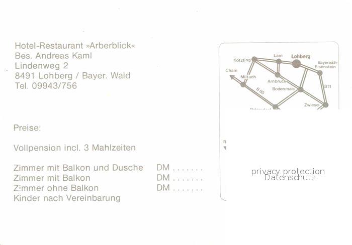 72654758 Lohberg Lam Hotel Restaurant Arberblick postalisch nicht gelaufen Werbekarte (keine Postkarte) Erhaltung siehe scans [AndreD76] KatCode: 11110009372178