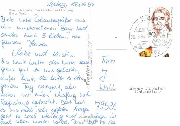 72859240 alte Postkarte Lohberg Lam Kirche Panorama Fluss Wildtierpark Luchs postalisch gelaufen Erhaltung siehe scans [WerneD78] KatCode: 11110009372178