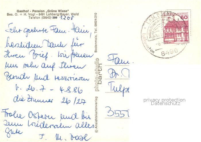 73122983 alte Postkarte Lohberg Lam Pension Gruene Wiese postalisch gelaufen Erhaltung siehe scans [NatalD47] KatCode: 11110009372178