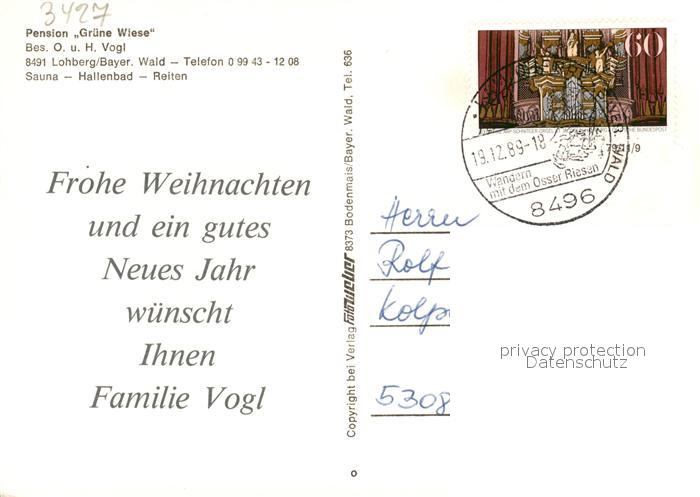 73203580 alte Postkarte Lohberg Lam Pension Gruene Wiese Bayerischer Wald im Winter postalisch gelaufen Erhaltung siehe scans [FriedD77] KatCode: 11110009372178
