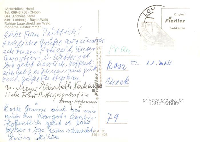 73654138 alte Postkarte Lohberg Lam Pension Restaurant Arberblick Gaststube Terrasse Panorama postalisch gelaufen Erhaltung siehe scans [WerneD78] KatCode: 11110009372178