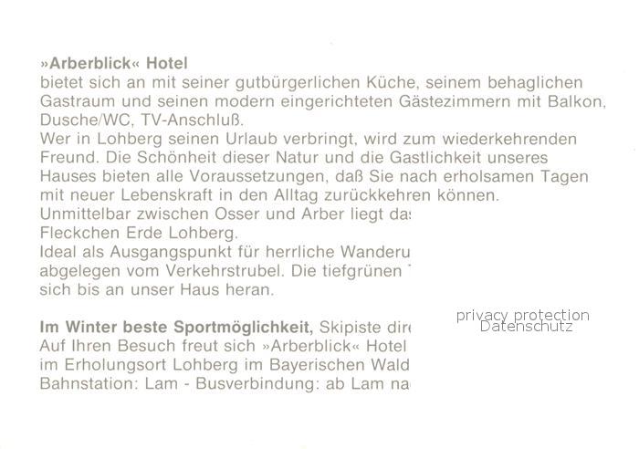 73730793 Lohberg Lam Pension Restaurant Arberblick Landschaft Bayerischer Wald postalisch nicht gelaufen Werbekarte (keine Postkarte) Erhaltung siehe scans [FriedD77] KatCode: 11110009372178