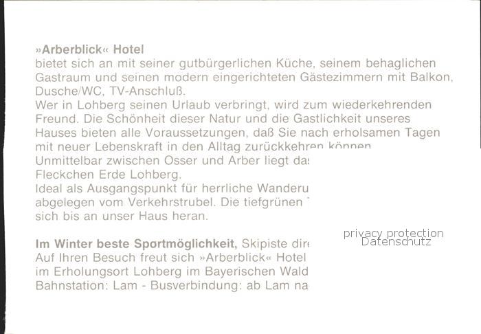 72131228 Lohberg Lam Pension Restaurant Arberblick postalisch nicht gelaufen Werbekarte (keine Postkarte) Erhaltung siehe scans KatCode: 11110009372178