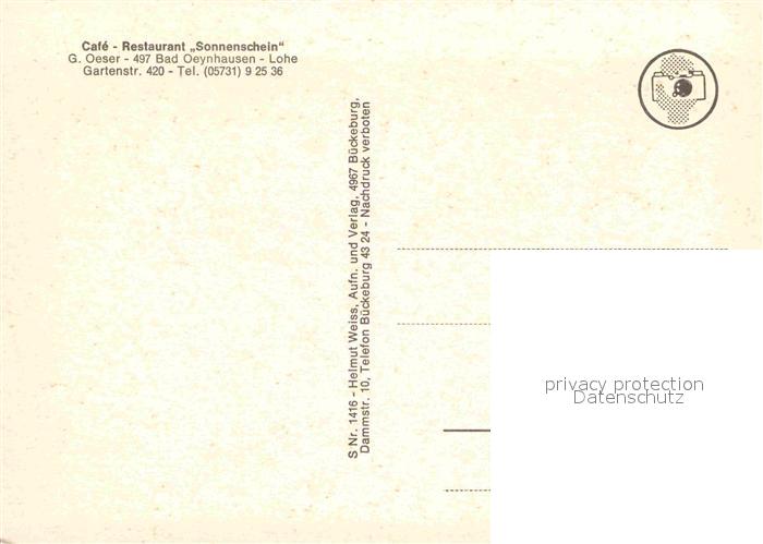 72927280 Lohe Bad Oeynhausen Cafe Restaurant Sonnenschein postalisch nicht gelaufen Erhaltung siehe scans [KathaD81] KatCode: 11110005770004