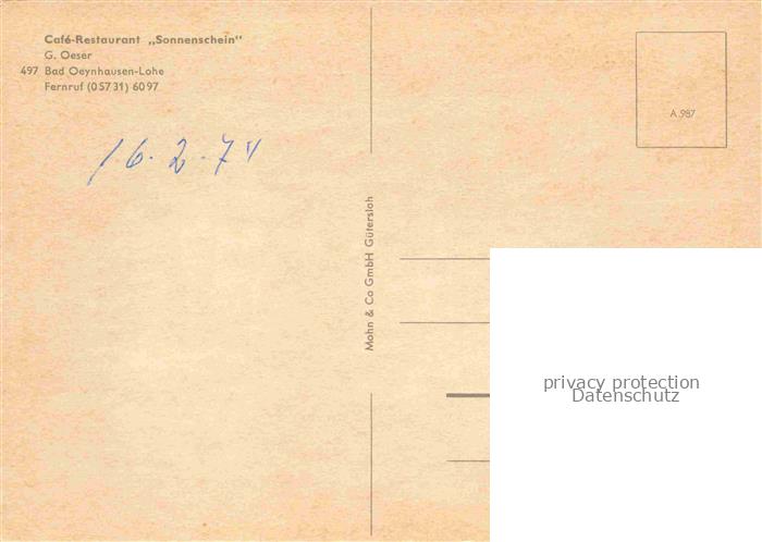 74043452 Lohe Bad Oeynhausen Café Restaurant Sonnenschein Gastraum postalisch nicht gelaufen Erhaltung siehe scans [FriedD77] KatCode: 11110005770004