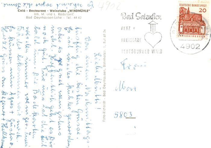 73875834 alte Postkarte Lohe Bad Oeynhausen Cafe Restaurant Weinstube Windmuehle postalisch gelaufen Erhaltung siehe scans [FriedD77] KatCode: 11110005770004