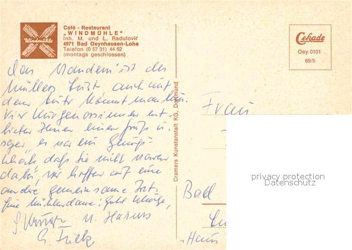 72757929 Lohe Bad Oeynhausen Cafe Restaurant Windmuehle postalisch nicht gelaufen Erhaltung siehe scans [NatalD47] KatCode: 11110005770004