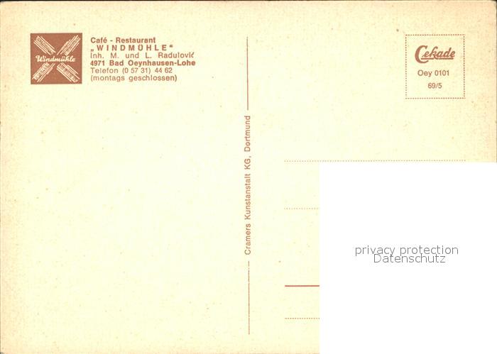 72476618 Lohe Bad Oeynhausen Cafe Restaurant Windmuehle postalisch nicht gelaufen Erhaltung siehe scans KatCode: 11110005770004