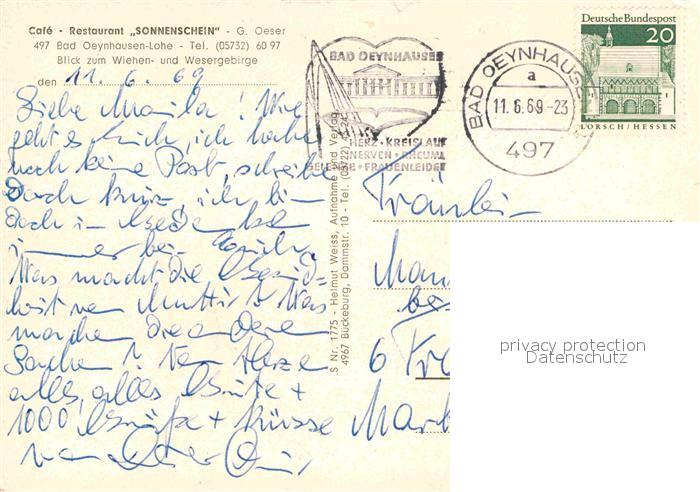 72917061 alte Postkarte Lohe Bad Oeynhausen Cafe Sonnenschein postalisch gelaufen Erhaltung siehe scans [NatalD47] KatCode: 11110005770004