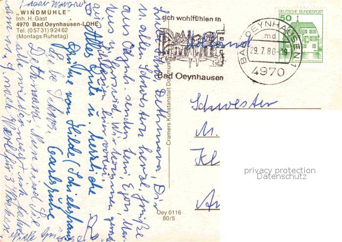 72855888 alte Postkarte Lohe Bad Oeynhausen Gaststaette Windmuehle postalisch gelaufen Erhaltung siehe scans [FriedD77] KatCode: 11110005770004