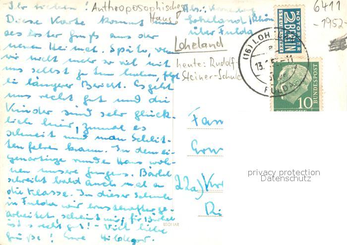 73705610 alte Postkarte Loheland Anthroposophisches Haus heute Rudolf-Steiner-Schule postalisch gelaufen Erhaltung siehe scans [LiesaD40] KatCode: 11110006631017