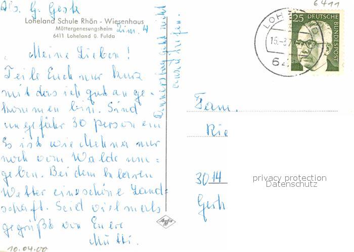 72915322 alte Postkarte Loheland Schule Rhoen Wiesenhaus postalisch gelaufen Erhaltung siehe scans [WerneD78] KatCode: 11110006631017