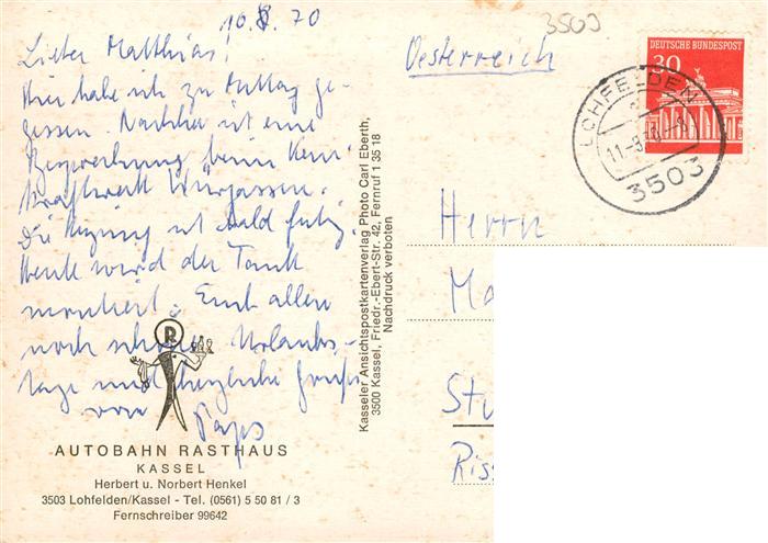 73938769 alte Postkarte Lohfelden Autobahn Rasthaus Kassel postalisch gelaufen Erhaltung siehe scans [FriedD77] KatCode: 11110006633017