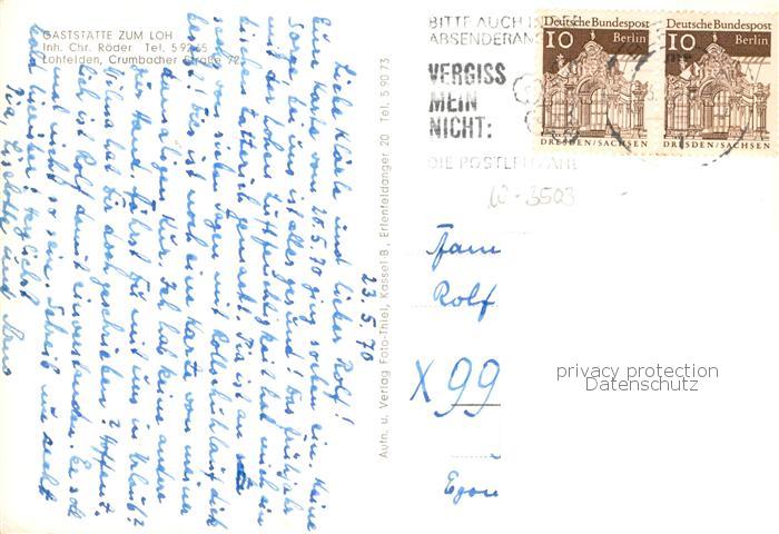 73852893 alte Postkarte Lohfelden Gaststaette zum Loh Gastraeume postalisch gelaufen Erhaltung siehe scans [WerneD78] KatCode: 11110006633017