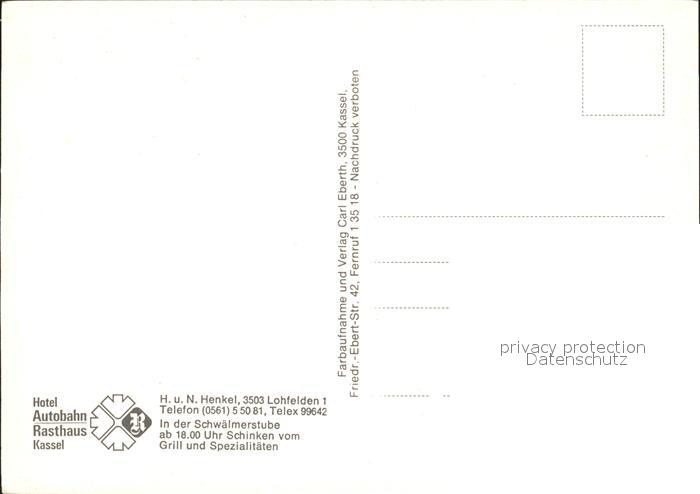 72224401 Lohfelden Hotel Autobahn Rasthaus Kassel Gastraum postalisch nicht gelaufen Erhaltung siehe scans KatCode: 11110006633017