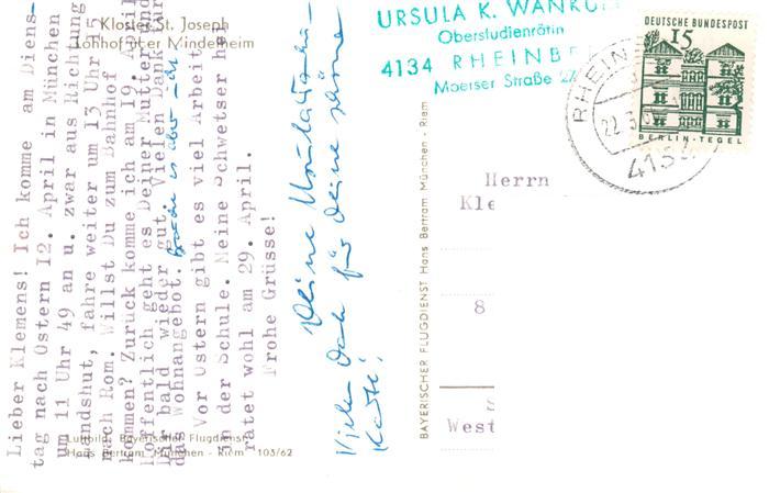 73878354 alte Postkarte Lohhof Schwaben Kloster St Joseph Fliegeraufnahme postalisch gelaufen Erhaltung siehe scans [WerneD78] KatCode: 11110009778173