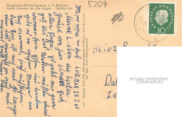 33703483 alte Postkarte Lohmar Bergmann Erholungswerk postalisch gelaufen Erhaltung siehe scans [WerneD78] KatCode: 11110005382028