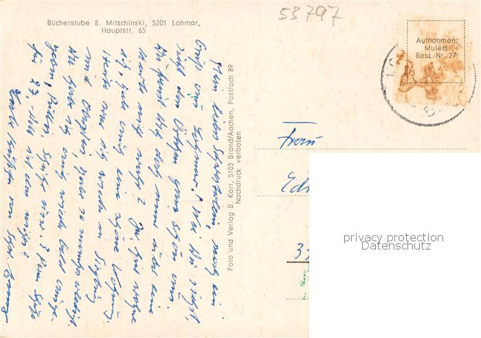 73865669 alte Postkarte Lohmar Teilansicht mit Kirche Johannes-Weiher Parkanlagen postalisch gelaufen Erhaltung siehe scans [FriedD77] KatCode: 11110005382028