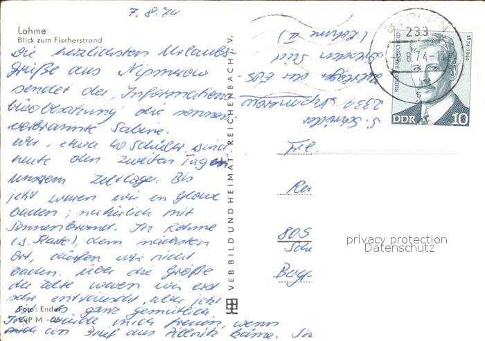 72401818 alte Postkarte Lohme Ruegen Blick zum Fischerstrand postalisch gelaufen Erhaltung siehe scans KatCode: 11110013061022