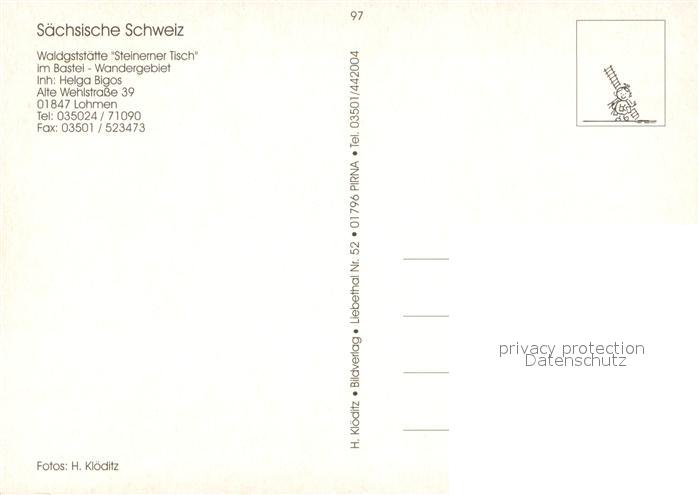 73642576 Lohmen Sachsen Waldgaststaette Steinerner Tisch Gaststube Garten Bastei postalisch nicht gelaufen Erhaltung siehe scans [WerneD78] KatCode: 11110014287240