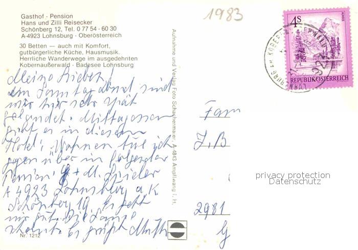 12834139 alte Postkarte Lohnsburg Kobernausserwald Gasthof Pension Reisecker postalisch gelaufen Erhaltung siehe scans [KathaD81] KatCode: 11390311041213
