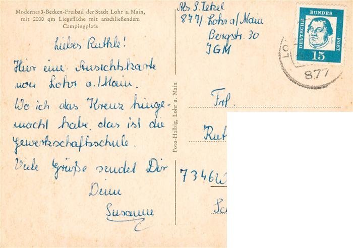 73871606 alte Postkarte Lohr Main 3 Becken Freibad mit Liegewiese und Campingplatz postalisch gelaufen Erhaltung siehe scans [WerneD78] KatCode: 11110009677155