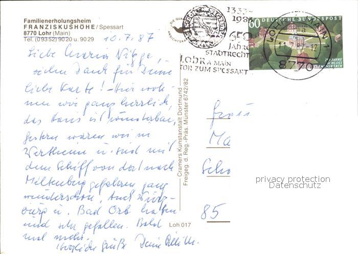 72069506 alte Postkarte Lohr Main Familienerholungsheim Franziskushoehe postalisch gelaufen Erhaltung siehe scans KatCode: 11110009677155