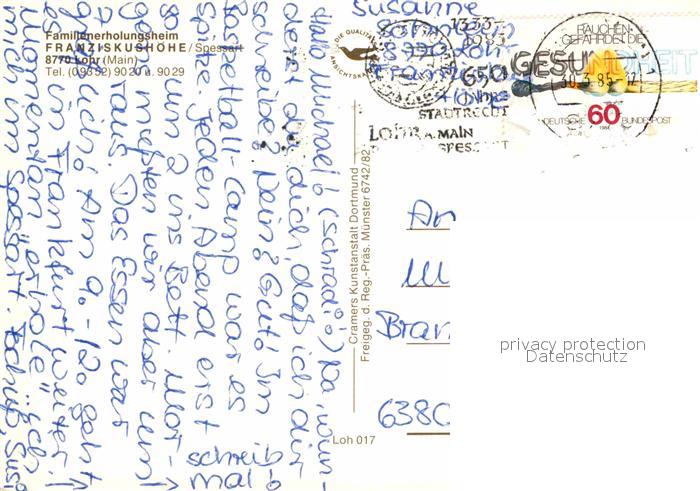 72885167 alte Postkarte Lohr Main Familienerholungsheim Franziskushoehe Fliegeraufnahme postalisch gelaufen Erhaltung siehe scans [WerneD78] KatCode: 11110009677155