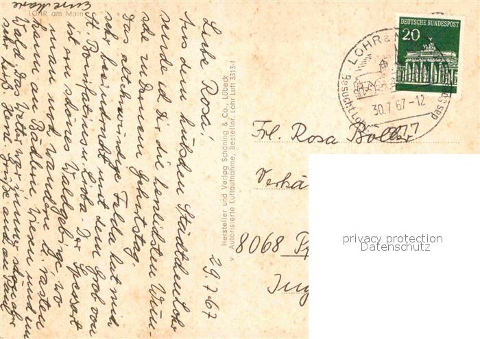 72830597 alte Postkarte Lohr Main Fliegeraufnahme postalisch gelaufen Erhaltung siehe scans [FriedD77] KatCode: 11110009677155