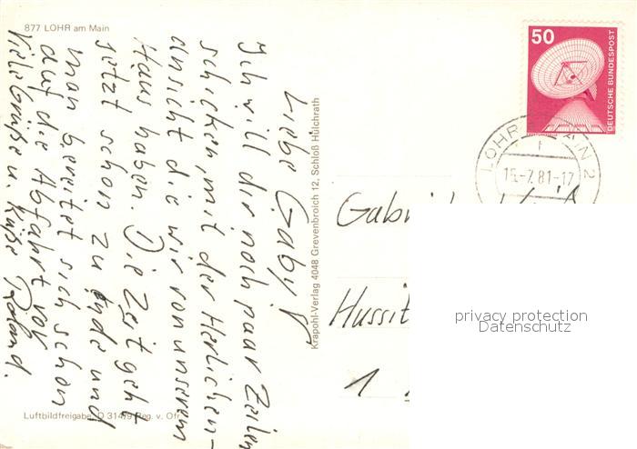 73681428 alte Postkarte Lohr Main Fliegeraufnahme postalisch gelaufen Erhaltung siehe scans [LiesaD40] KatCode: 11110009677155