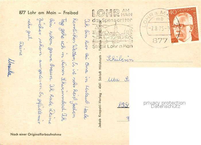 73165012 alte Postkarte Lohr Main Freibad postalisch gelaufen Erhaltung siehe scans [WerneD78] KatCode: 11110009677155