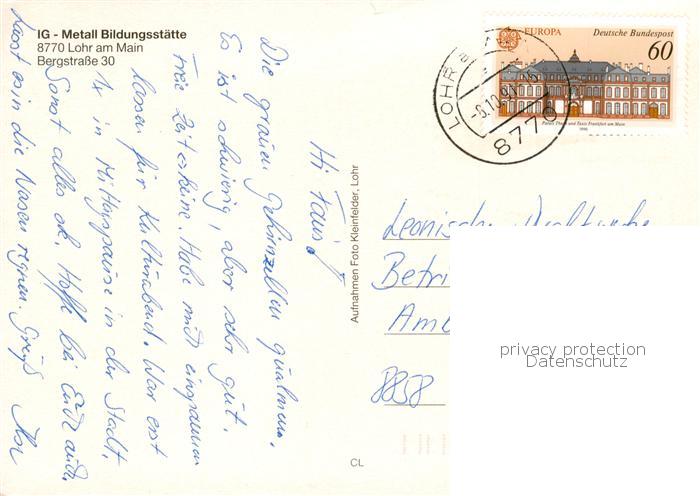 73845273 alte Postkarte Lohr Main IG Metall Bildungsstaette Sportplatz postalisch gelaufen Erhaltung siehe scans [FriedD77] KatCode: 11110009677155