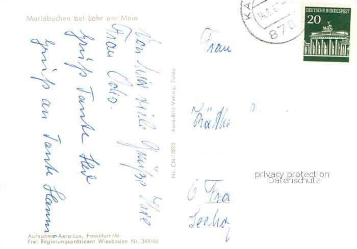 73864670 alte Postkarte Lohr Main Kirche Mariabuchen Fliegeraufnahme postalisch gelaufen Erhaltung siehe scans [WerneD78] KatCode: 11110009677155