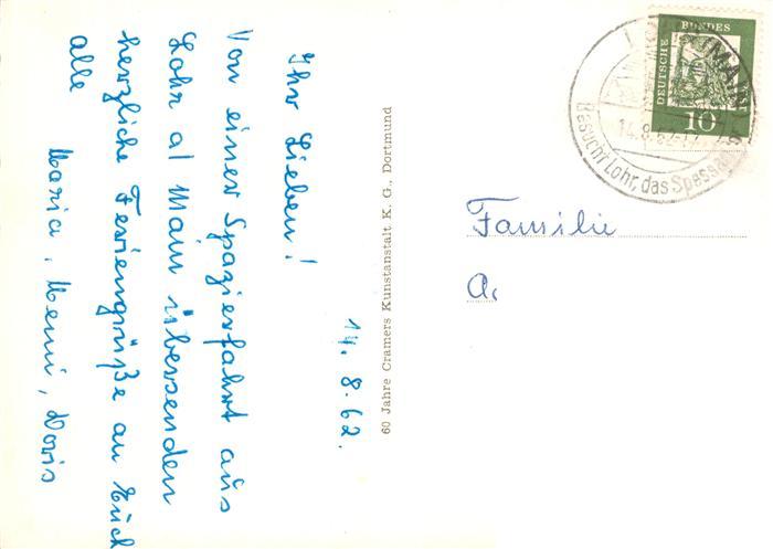 73895799 alte Postkarte Lohr Main Schloss Panorama Marktplatz Turm Gasthaus postalisch gelaufen Erhaltung siehe scans [FriedD77] KatCode: 11110009677155
