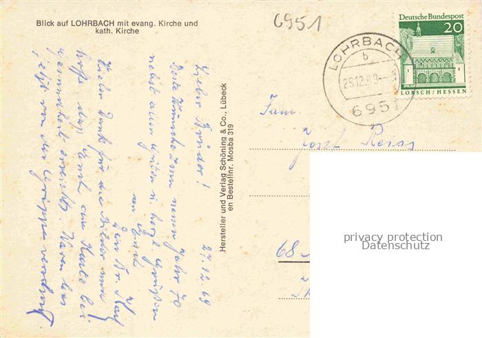74035800 alte Postkarte Lohrbach Mosbach Neckar-Odenwald-Kreis BW mit ev und kath Kirche postalisch gelaufen Erhaltung siehe scans [WerneD78] KatCode: 11110008225058