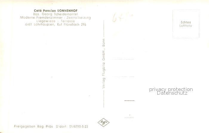 73749469 Lohrhaupten Cafe Pension Sonnenhof Fliegeraufnahme postalisch nicht gelaufen Erhaltung siehe scans [WerneD78] KatCode: 11110006435008
