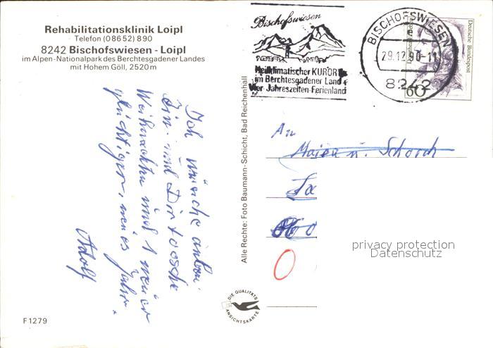 72049527 alte Postkarte Loipl Rehabilitationsklinik Loipl Alpen Nationalpark mit Hohem Goell postalisch gelaufen Erhaltung siehe scans KatCode: 11110009172117