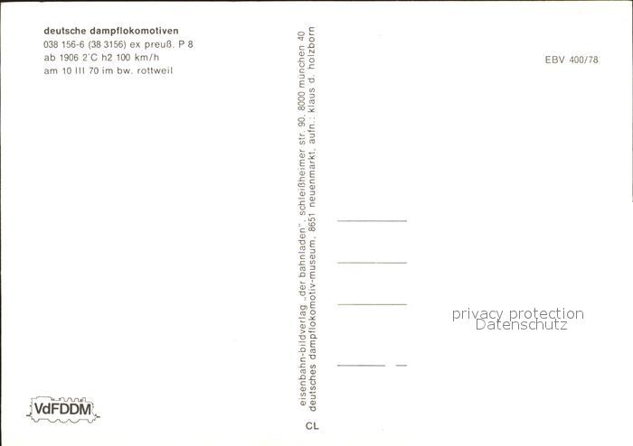 Lokomotive 038 156-6 Rottweil postalisch nicht gelaufen Erhaltung siehe scans