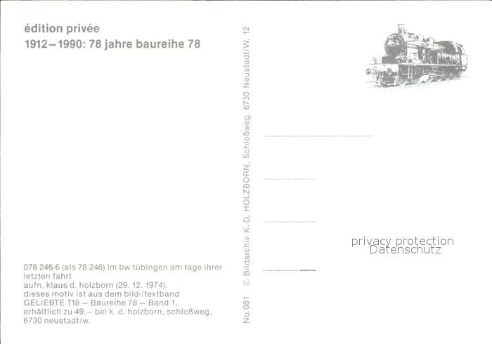 Lokomotive 078 246-6 Bw Tuebingen postalisch nicht gelaufen Erhaltung siehe scans