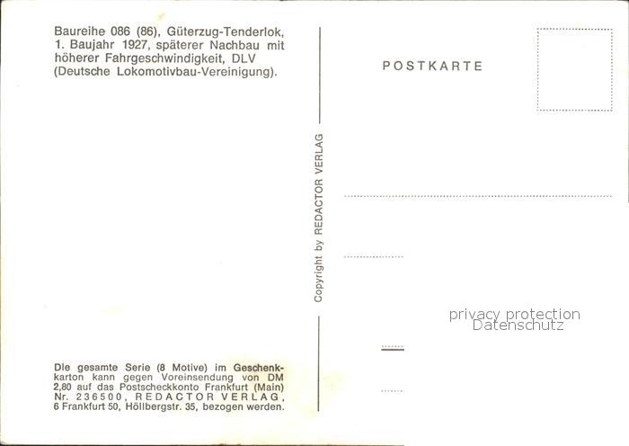Lokomotive 086-808-3 Gueterzug-Tenderlok postalisch nicht gelaufen Erhaltung siehe scans
