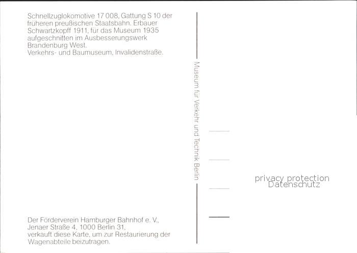 Lokomotive 17 008 S10 Preussen Staatsbahn postalisch nicht gelaufen Erhaltung siehe scans