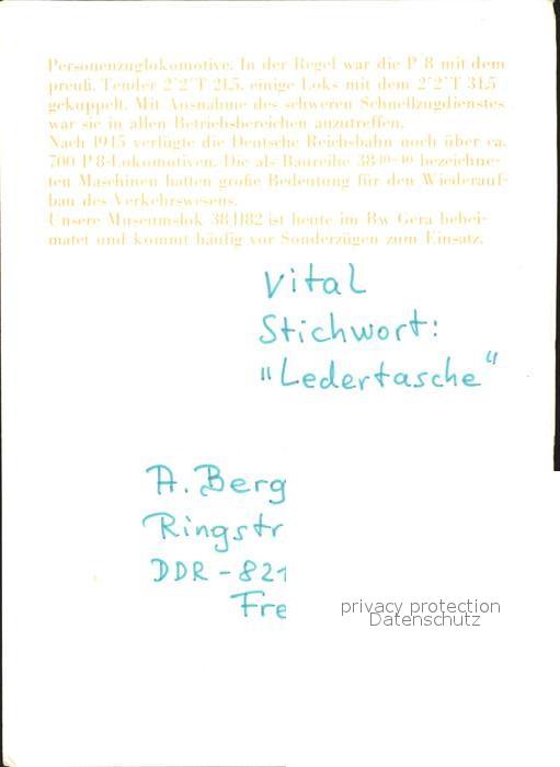 Lokomotive 38-1182 postalisch nicht gelaufen Erhaltung siehe scans