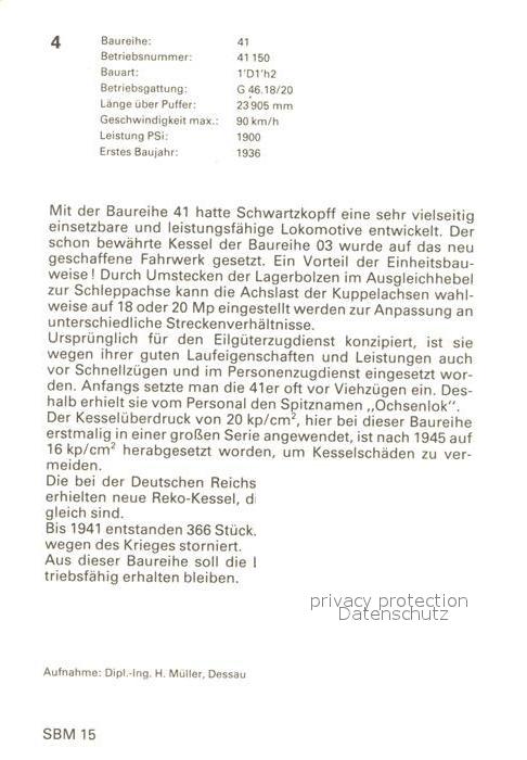 Lokomotive 41 150 postalisch nicht gelaufen Keine Postkarte (siehe scan) Erhaltung siehe scans [PaolaD17]