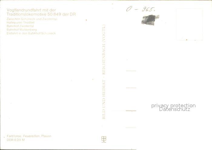 Lokomotive 50 849 DR Vogtlandrundfahrt Schoeneck Zwotental postalisch nicht gelaufen Erhaltung siehe scans