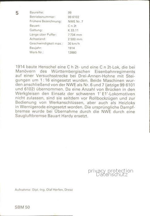 Lokomotive 99 6102-0 postalisch nicht gelaufen